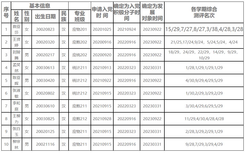 根据本人申请,党组织培养,经自拍流出 学生党支部委员会研究、支部大会讨论并无记名投票表决,拟吸收曲亚莎等10位同志为中共预备党员,现将其有关情况予以公示。