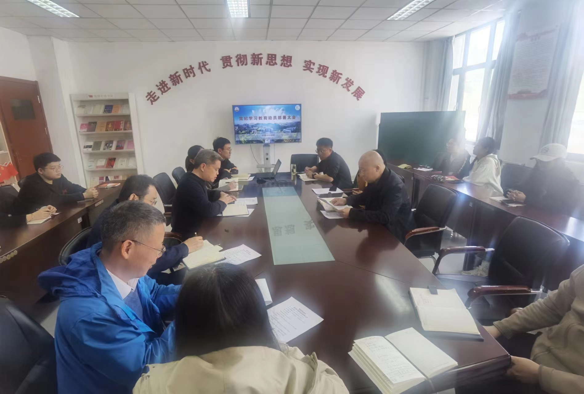 党委在学院210会议室召开党纪学习教育动员部署大会,会议由学院党委书记刘保成主持,学院党委委员、各支部委员、教师党员代表以及学生党员代表参加。