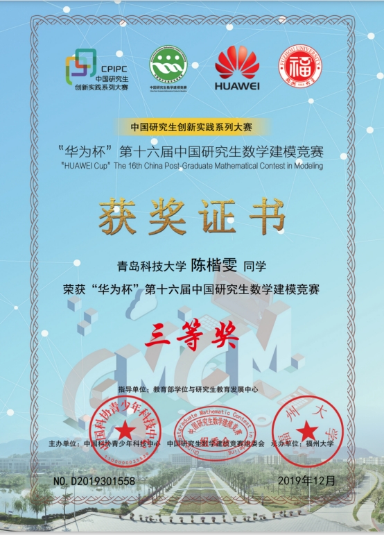 本专业至2017年开始招生以来,在夯实专业课程学习的基础上,积极参加学科竞赛等课外活动,获得了包括全国大学生数学建模竞赛国家一等奖3人、国家二等奖1人、省级奖项10人;全国研究生数学建模竞赛国家二等奖6人、国家三等奖3人;美国大学生数学建模竞赛8人;数学竞赛4人等奖项和荣誉,取得了丰硕的成果,为下一步学生就业和深造奠定了基础。