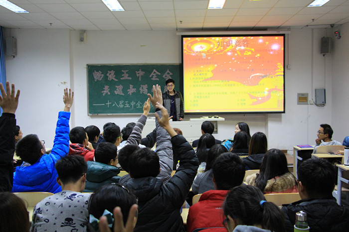 学院学生会组织了形式多样的知识竞赛活动,宣传全会精神。竞赛活动采取现场竞答、问卷回答等形式,题目围绕即将完成的“十二五”规划和已经出台的“十三五”规划建议展开。知识竞赛活动得到了同学们的广泛关注与支持,使同学们进一步加深了对党的新动向、新政策的理解和掌握。
