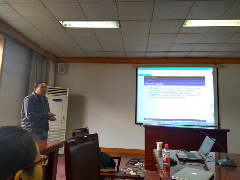 薛庆营教授首先介绍了多线性算子的背景知识,发展历史以及科学意义;然后,他重点介绍了多线性分数次强极大函数的加权有界性理论,并阐述了自己和学生、合作者在这方面的一系列成果。
