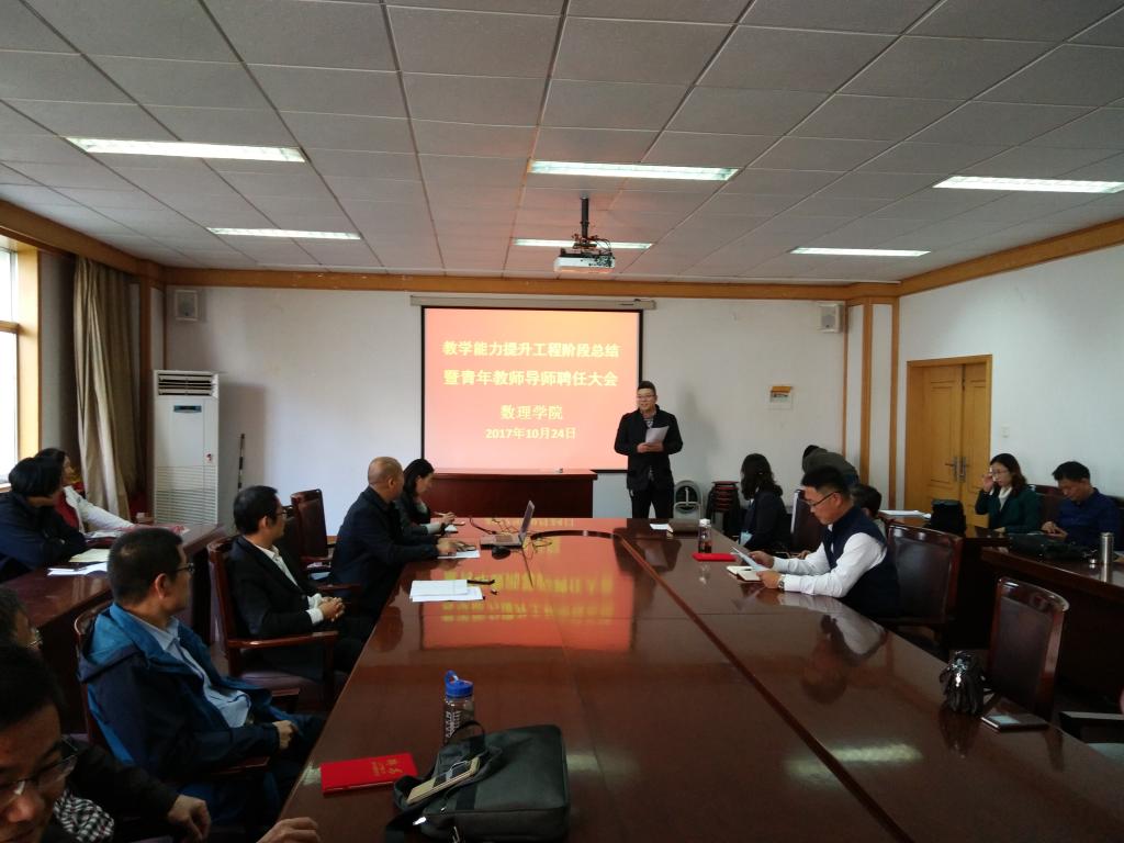 于10月24日下午举办了教学能力提升工程阶段性总结暨青年教师导师聘任大会。教务处处长王霞,学院党政领导李淑贞、杨树国、王明辉出席,会议由副院长郭广海主持。