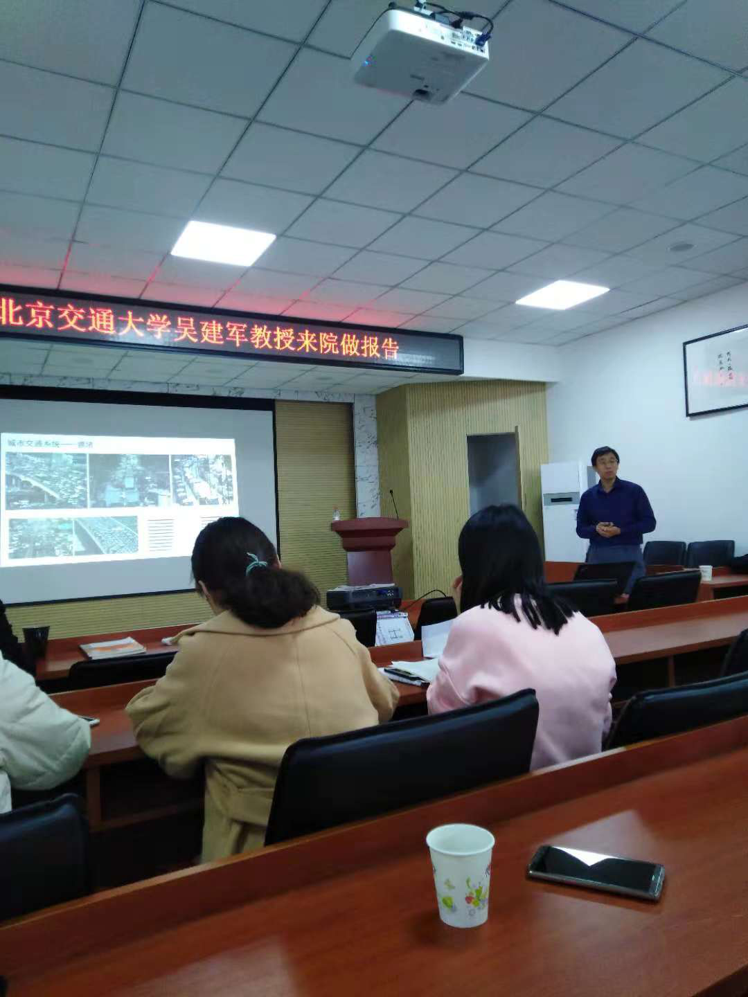 吴建军教授以城市轨道交通自动售检票系统AFC数据为基础,从城市轨道交通系统建模、乘客出行规律挖掘、运行图衔接优化、节能运行控制等方面,系统介绍了数据驱动下的系统管理与优化以及在此基础上形成的决策管理系统与相关应用。随后和师生们对学院数学建模、智能数据分析、大数据分析等在交通系统的应用进行了广泛交流,对学院师生们开展大数据背景下目标导向的相关研究具有重要的借鉴意义。