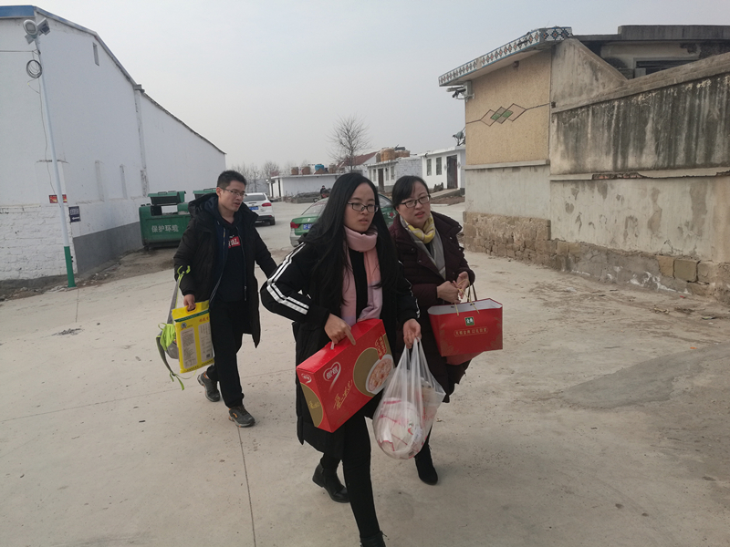 党总支副书记王丽,学工办葛夫国、刘祥鹏、殷华敏一行四人,带着全院师生的深切关爱,看望了两位同学,送去了慰问品和新春的祝福。