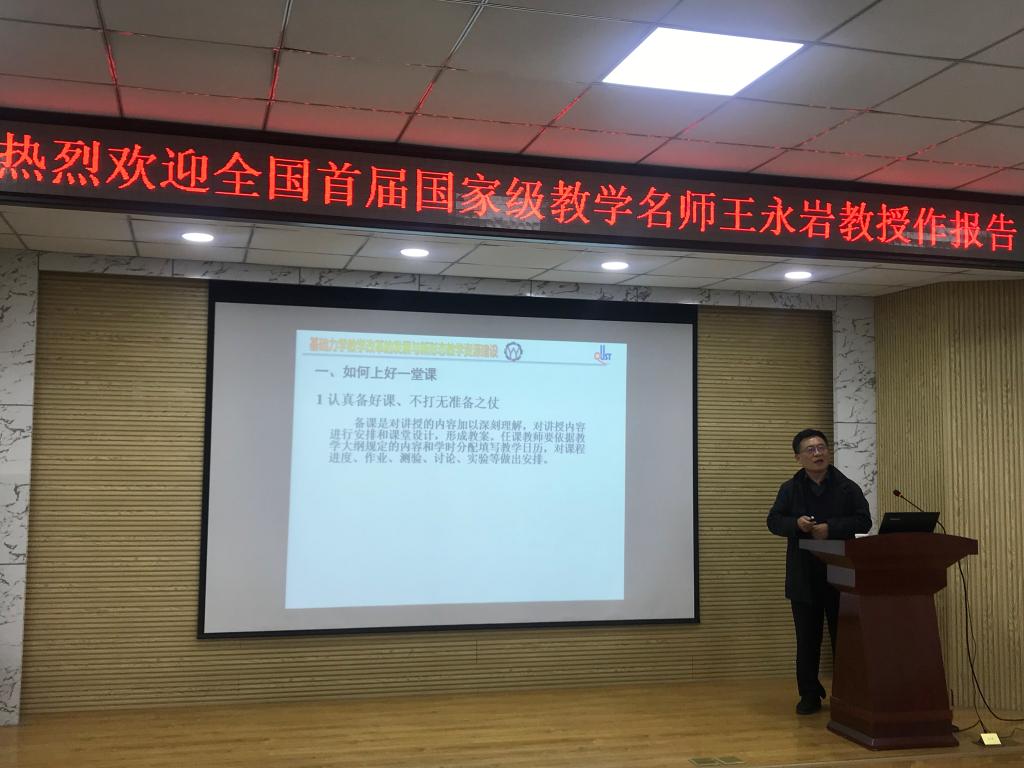 王永岩教授以“热爱教师事业 敬业教师工作”为题,结合自己从教30多年的教学经验和丰硕成果,细致地阐述了课堂教学、命题考试与试卷评价、教学改革等教师普遍关注的重点、难点问题。