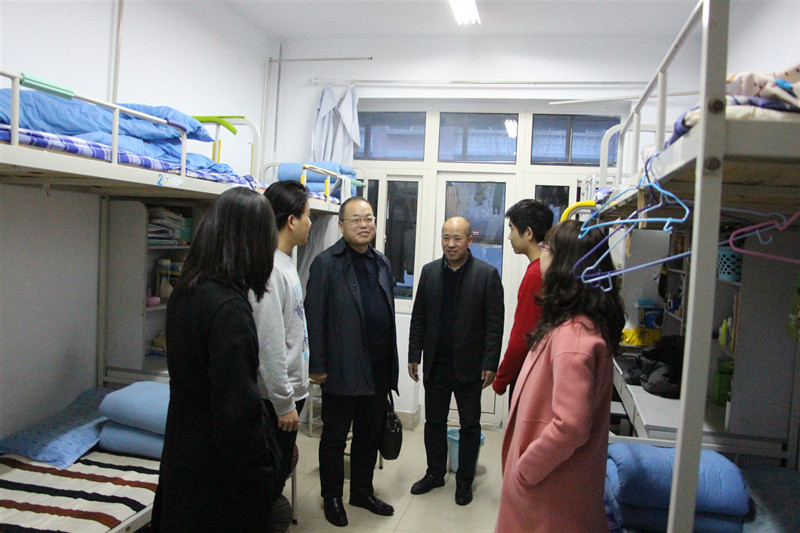 学生宿舍进行走访,看望学生。在低年级学生宿舍亲切询问同学们入学以来的感受,是否适应学校生活;在临近期末考试之际,勉励同学们珍惜韶华,刻苦复习;在毕业生宿舍,询问同学们的考研和就业情况,并与同学们进行亲切交流。