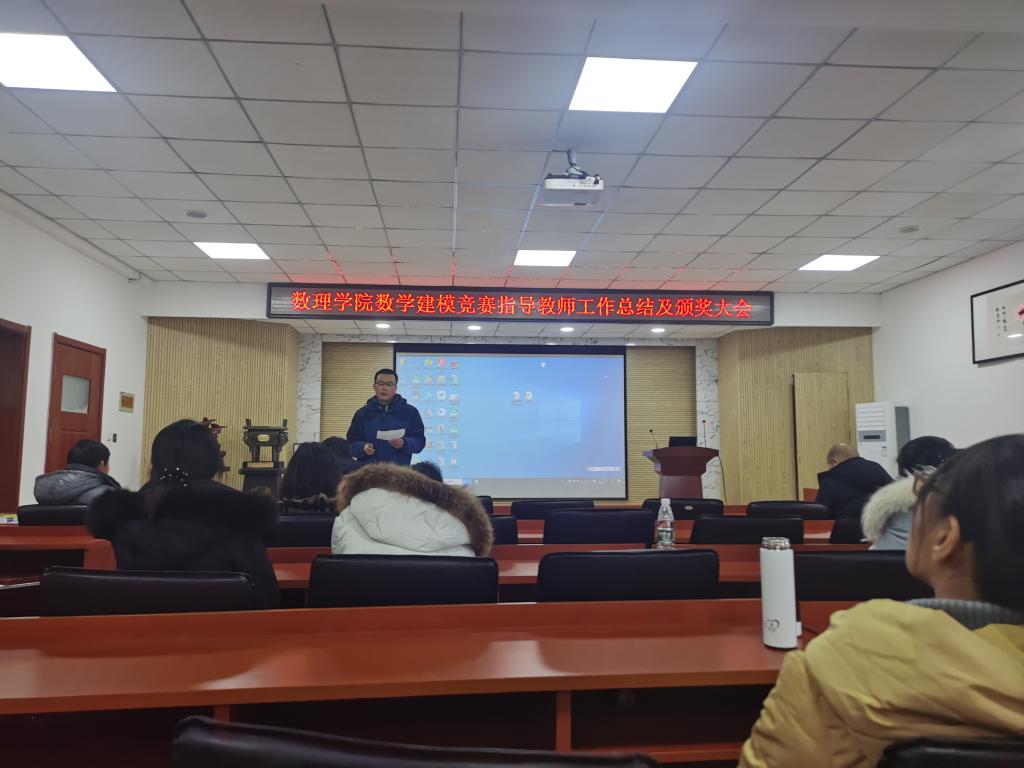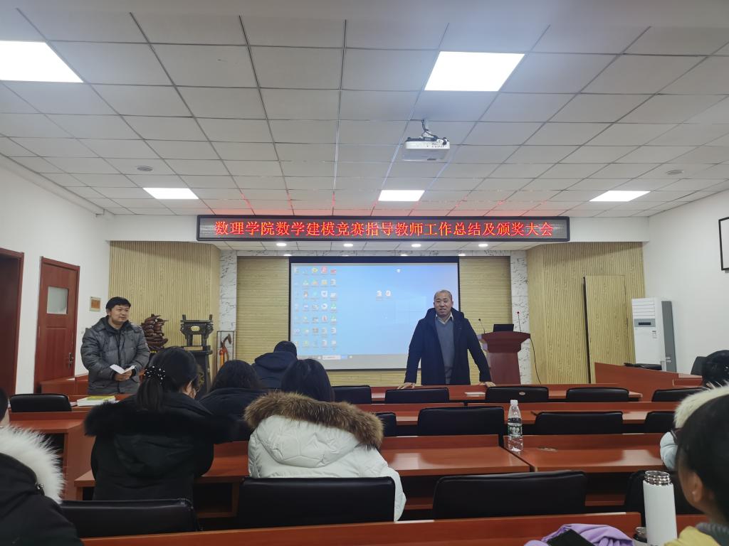 1月7日上午,数理学院在D2楼220会议室召开了数学建模竞赛指导教师工作总结暨颁奖大会,数理学院院长杨树国、副院长王明辉、数学系党支部书记徐菲以及全体数学建模指导老师共计50余人参加了本次会议,会议由数学建模教研室主任邢建民主持。
