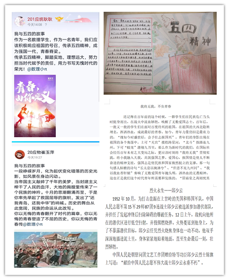 组织学院青年学生,线上开展“学党史、强信念、跟党走”主题团日活动,重温五四经典,观看《习近平总书记在清华大学考察》新闻报道视频和“同上‘四史’思政大课”视频,并组织开展青年团员共话成长交流研讨。在党史学习教育中,引导青年学生发扬五四精神,做到学史明理、学史增信、学史崇德、学史力行,从历史中获取精神能量、奋进力量。