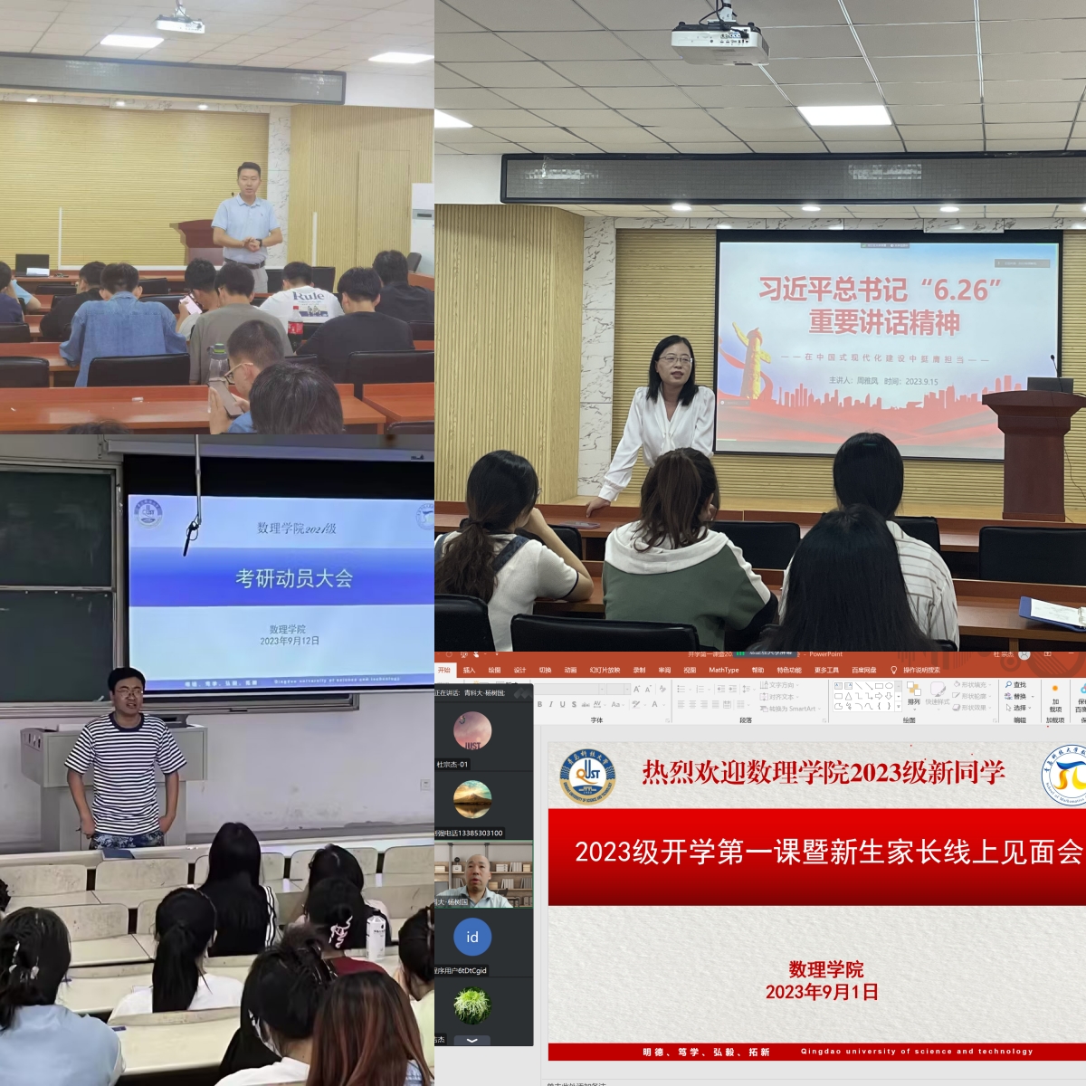 院长杨树国主讲“新生网络云课堂暨家长见面会”,从学院人才培养、学科建设、科学研究、对外交流合作等方面分享成绩经验,并鼓励在场学生勇于担当作为、树立远大理想、甘于埋头苦干、厚植家国情怀,引导学生树立报国之志,将理想抱负与国家命运、学校使命联系起来,并与新生针对大学生活常见的学习生活问题进行了线上交流。组织23级新生集中参加红色观影活动,《长津湖》让新生回顾了抗美援朝战争的历史背景、战斗过程和胜利意义,目睹英勇的中国军人和志愿军战士不畏强敌,勇往直前。副院长王明辉、党委副书记李雯雯围绕学术诚信、实践历练、科研能力、职业规划、等方面与23级研究生新生进行分享交流,鼓励学生新生适应新环境,转变新角色,开启新征程,以个人成长和学业成才助推科技强国建设。各年级还就加强安全责任教育、爱校荣校教育、道德规范教育、心理健康教育等问题进行了交流部署。