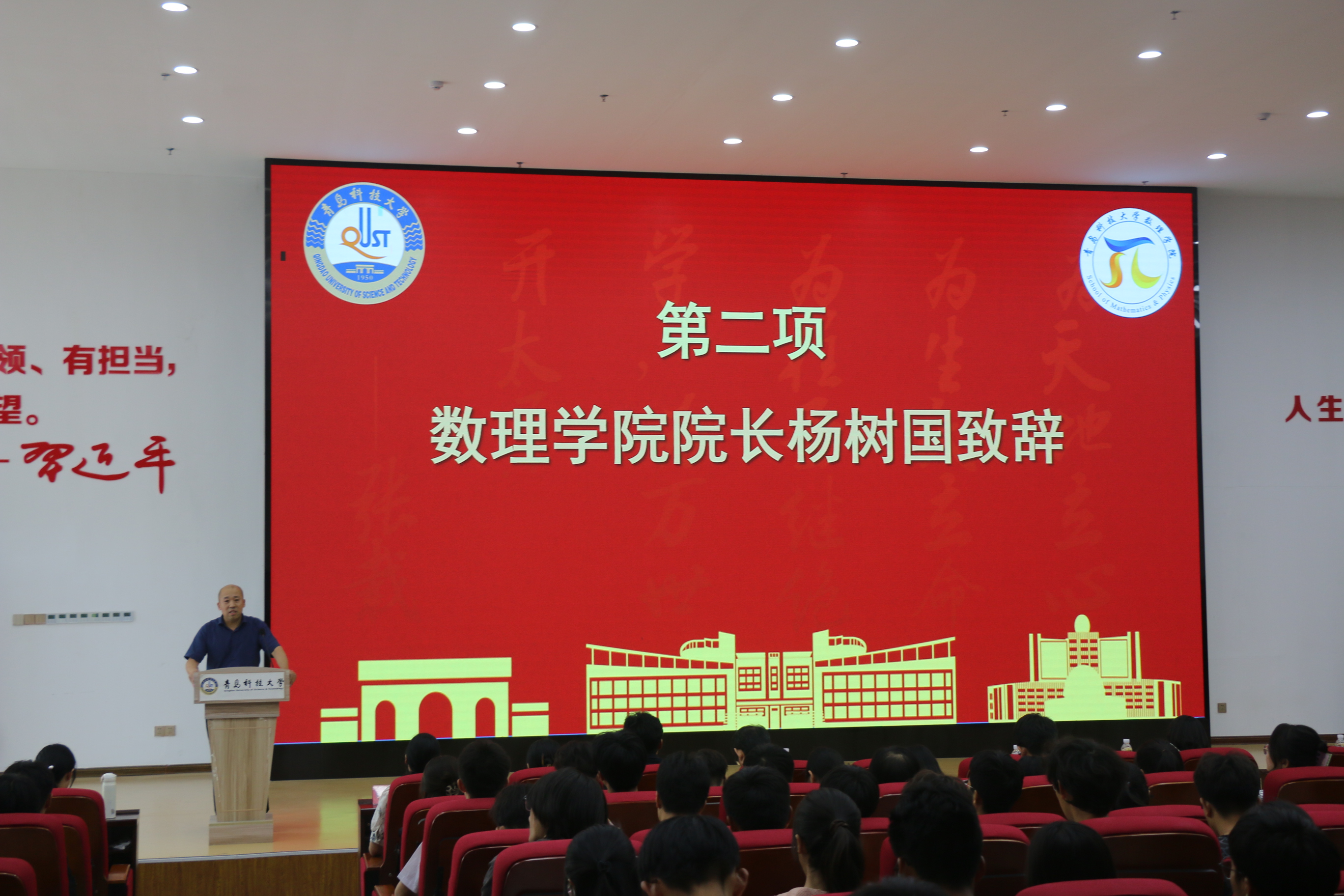 在崂山校区北苑团学报告厅举行2023级新生入学教育暨学风建设启动仪式,学院院长杨树国、党委书记李淑贞、副院长王明辉、党委副书记兼副院长李雯雯,数学系主任张瑞坤、物理系主任高鹏,2023级新生班主任、全体辅导员,全体2023级新生参加了本次会议。