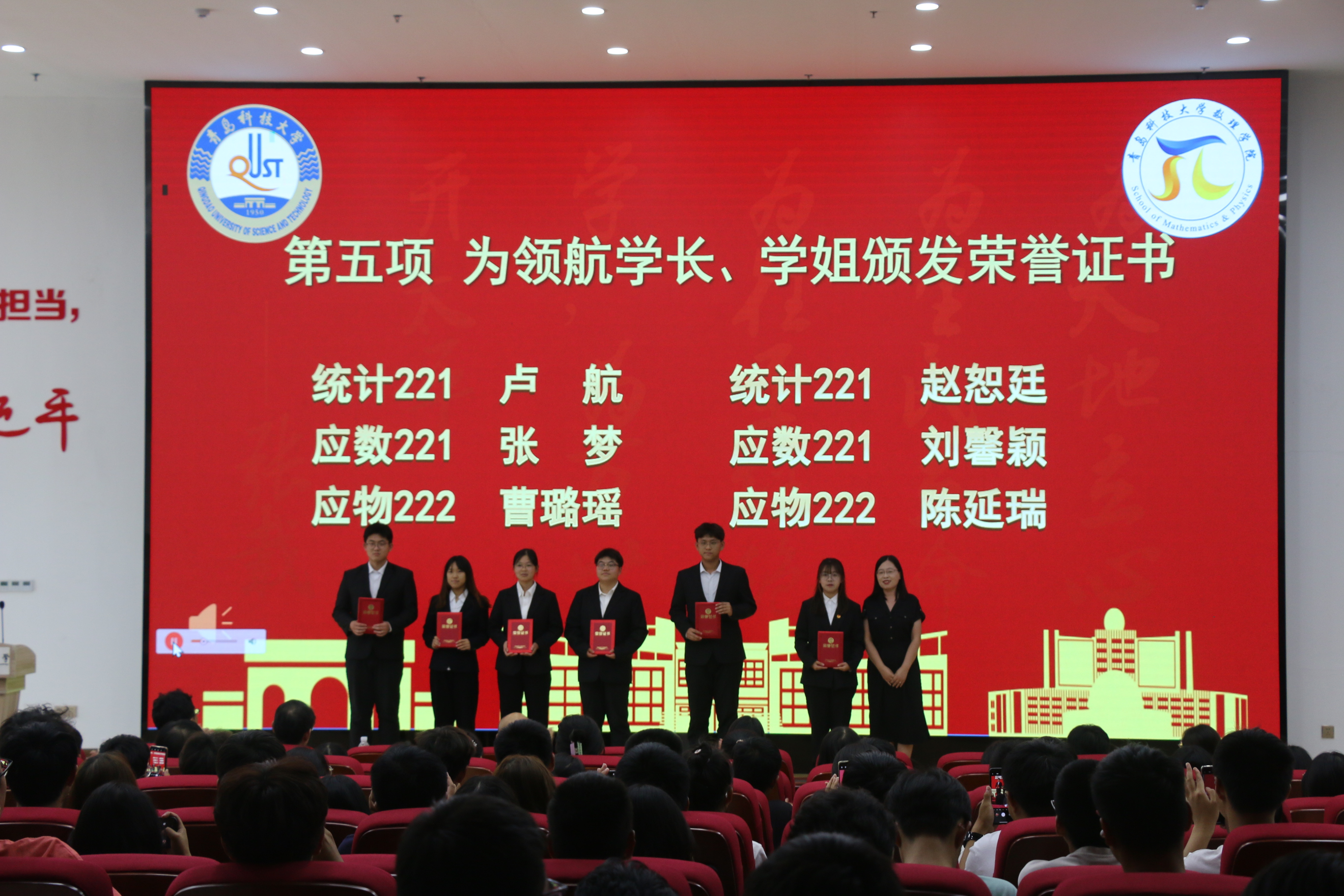 王明辉为优秀志愿者颁发荣誉证书,李雯雯为领航学长、学姐颁发荣誉证书。