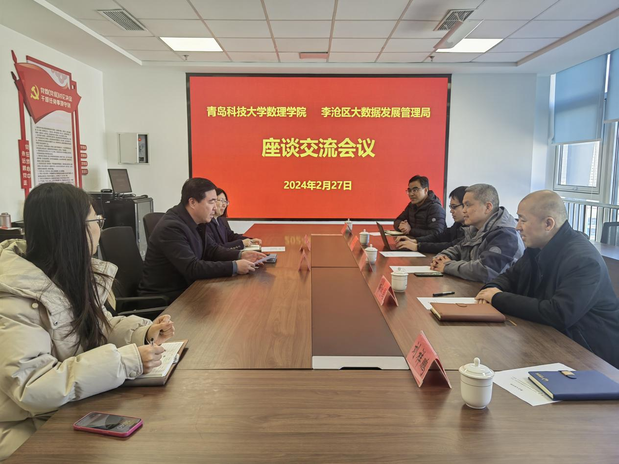 党委书记刘保成、院长杨树国一行走访了青岛市李沧区大数据发展管理局,并与李沧区大数据发展管理局党组书记、局长张强和党组成员、副局长苗蕾进行座谈交流。物理系主任高鹏、数学系朱善良、刘祥鹏老师参加了此次座谈。