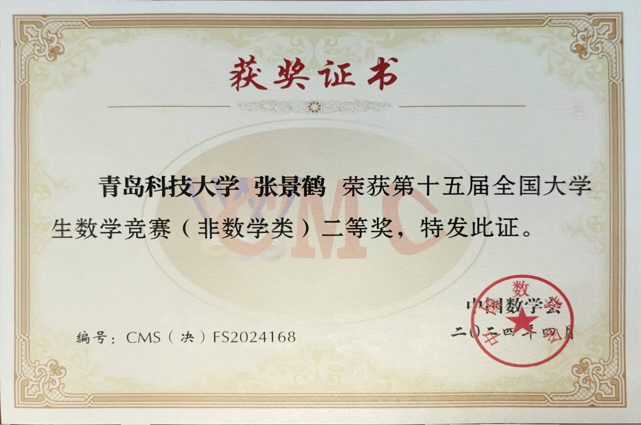 2022级本科生张景鹤决赛成绩70.5分,斩获全国二等奖,为学校历年来最好成绩!
