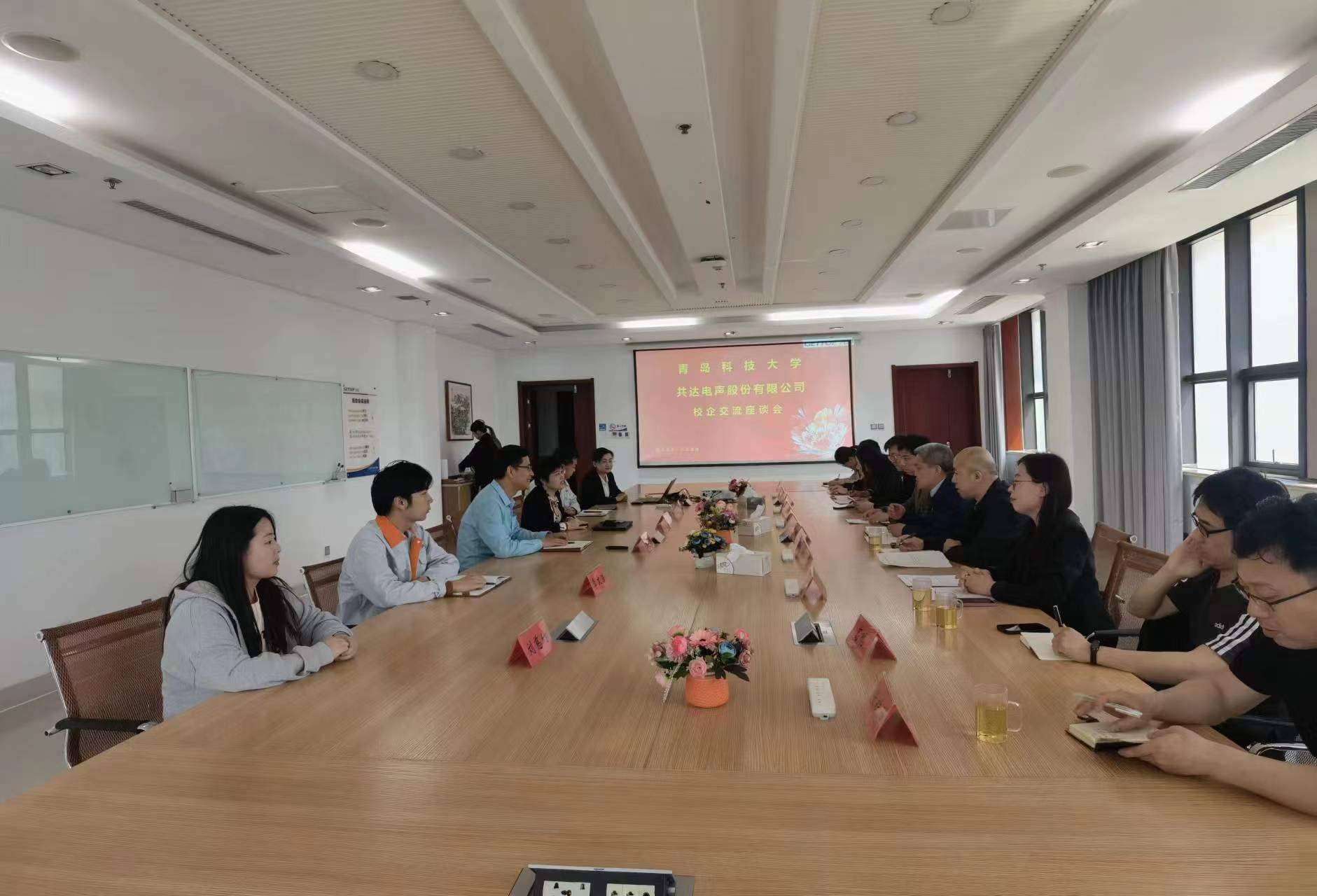 和高密校区的发展历史、学科特色、专业设置等情况。共达电声负责人介绍了企业在人才培养过程中的心得,双方围绕企业如何参与到深度人才培养体系中进行了重点探讨。就职于共达电声的学校校友分享了工作成绩、心得体会。