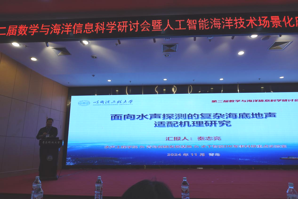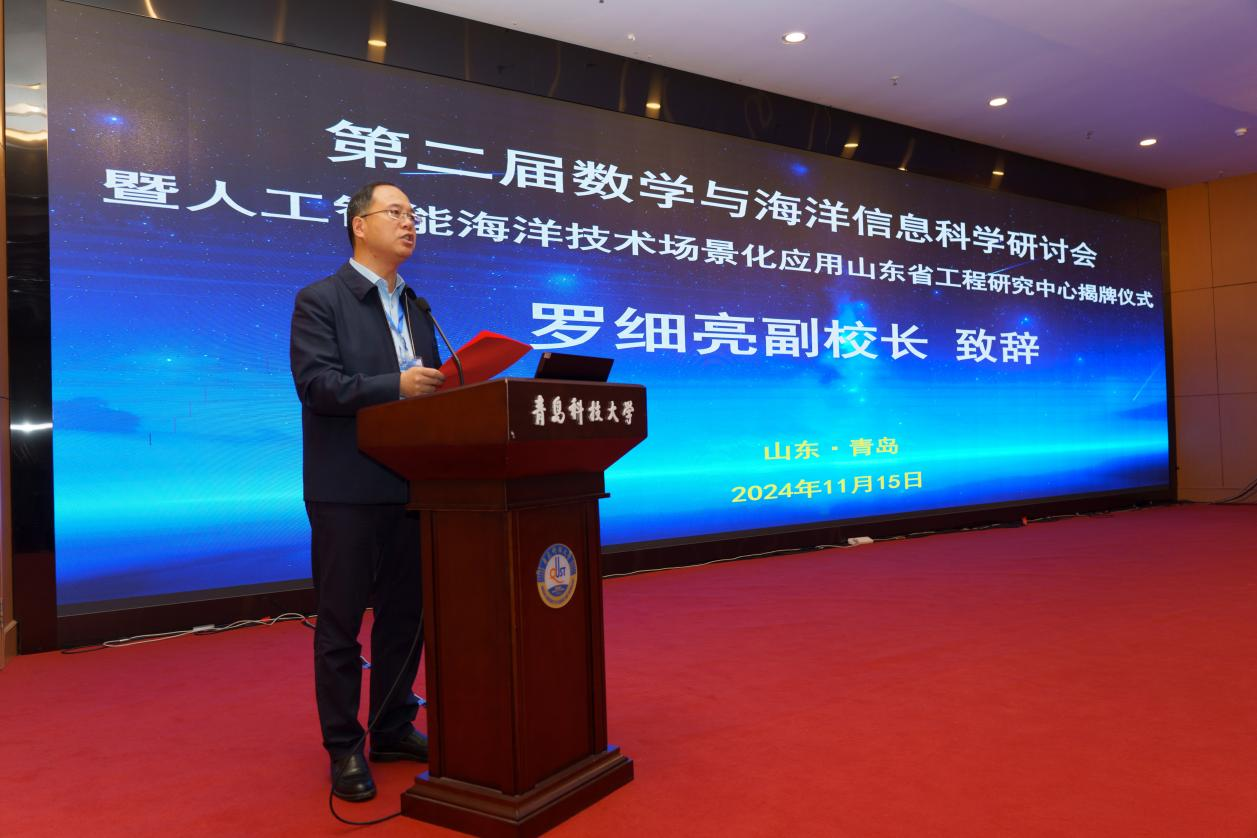 党委常委、副校长罗细亮教授代表学校致欢迎辞。他指出,“学校聚焦山东海洋强省建设和青岛打造现代海洋经济发展高地目标,发挥青岛海洋科研集聚优势,整合校内外资源,积极推动数学与大数据、海洋科学、人工智能海洋学等新兴学科和专业的交叉融合,打造高能级科研平台,有组织服务地方经济社会发展。学校与自然资源部第一海洋研究所、青岛阅海信息公司共同申报的‘人工智能海洋技术场景化应用山东省工程研究中心’成功获批,必将进一步推动创新链产业链深度融合,加速人工智能前沿技术在海洋产业领域的创新应用,为构建现代海洋产业体系增势赋能。”,并充分肯定了本次会议对学校学科建设、平台建设等方面的重要作用。
