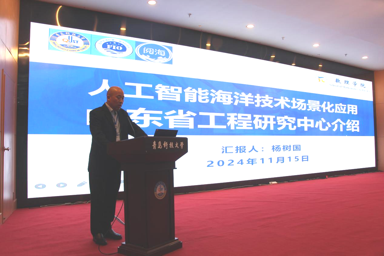 院长杨树国教授介绍了近年来学校交叉学科、山东省重点扶持储备学科“数学与海洋信息科学”以及青岛市人工智能海洋技术创新中心及人工智能海洋技术场景化应用山东省工程研究中心的建设情况、取得成果、运行机制和发展规划等。