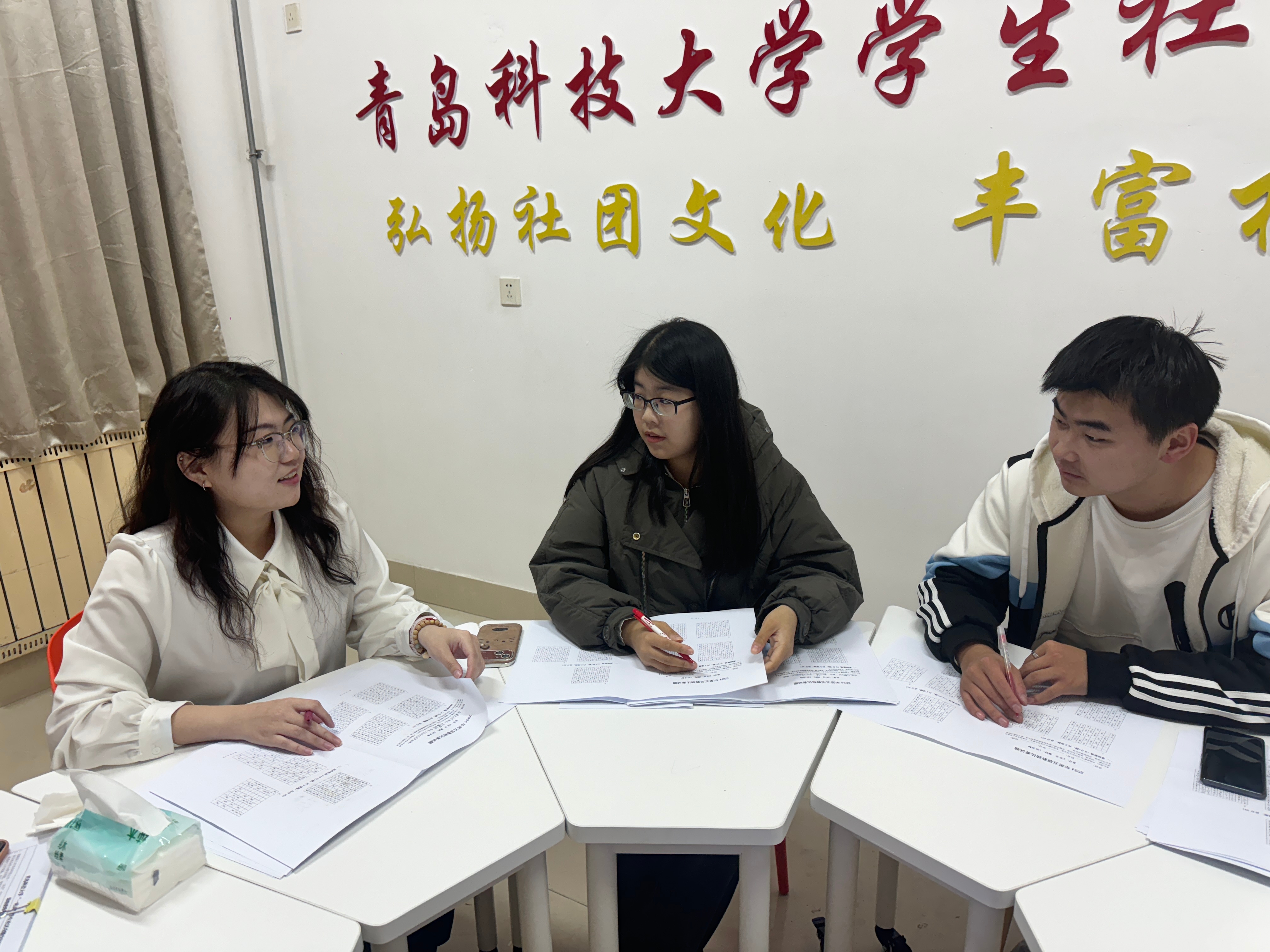 在“一站式”学生社区服务中心的社团活动室举办年终分析总结会。