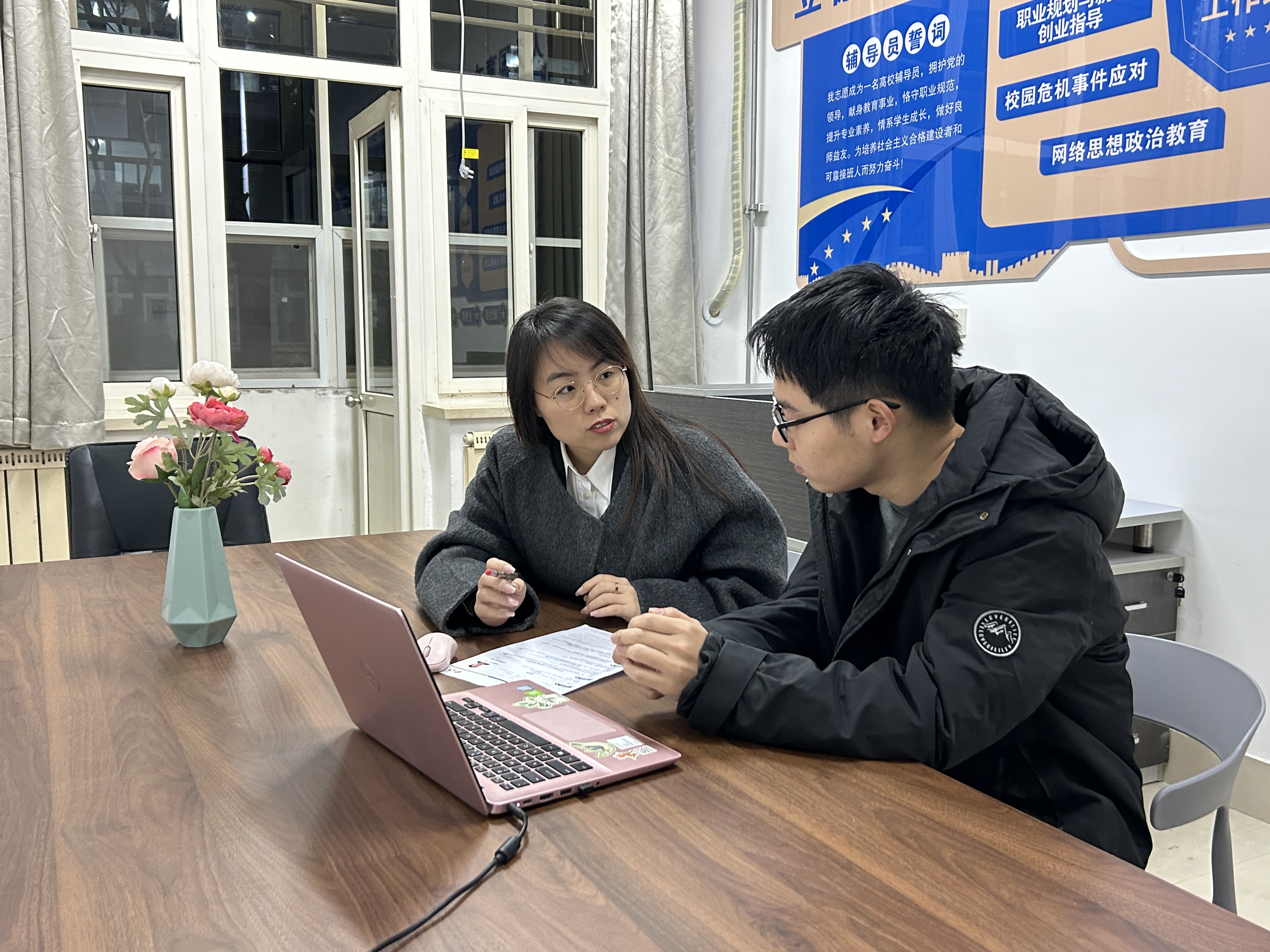 “简历问诊”活动中,辅导员为每位毕业生从格式排版、内容撰写等方面进行了细致入微的修改,还结合每位毕业生的专业背景和求职意向,提供了个性化的优化建议。“面试一对一”活动中,由辅导员担任“考官”,依据毕业生求职意向,从面试题库中随机抽取问题,并与“面试者”进行交流。通过模拟真实的面试场景,让毕业生们提前感受面试氛围,帮助毕业生们明确自身的优势和不足,并针对性地进行改进。
