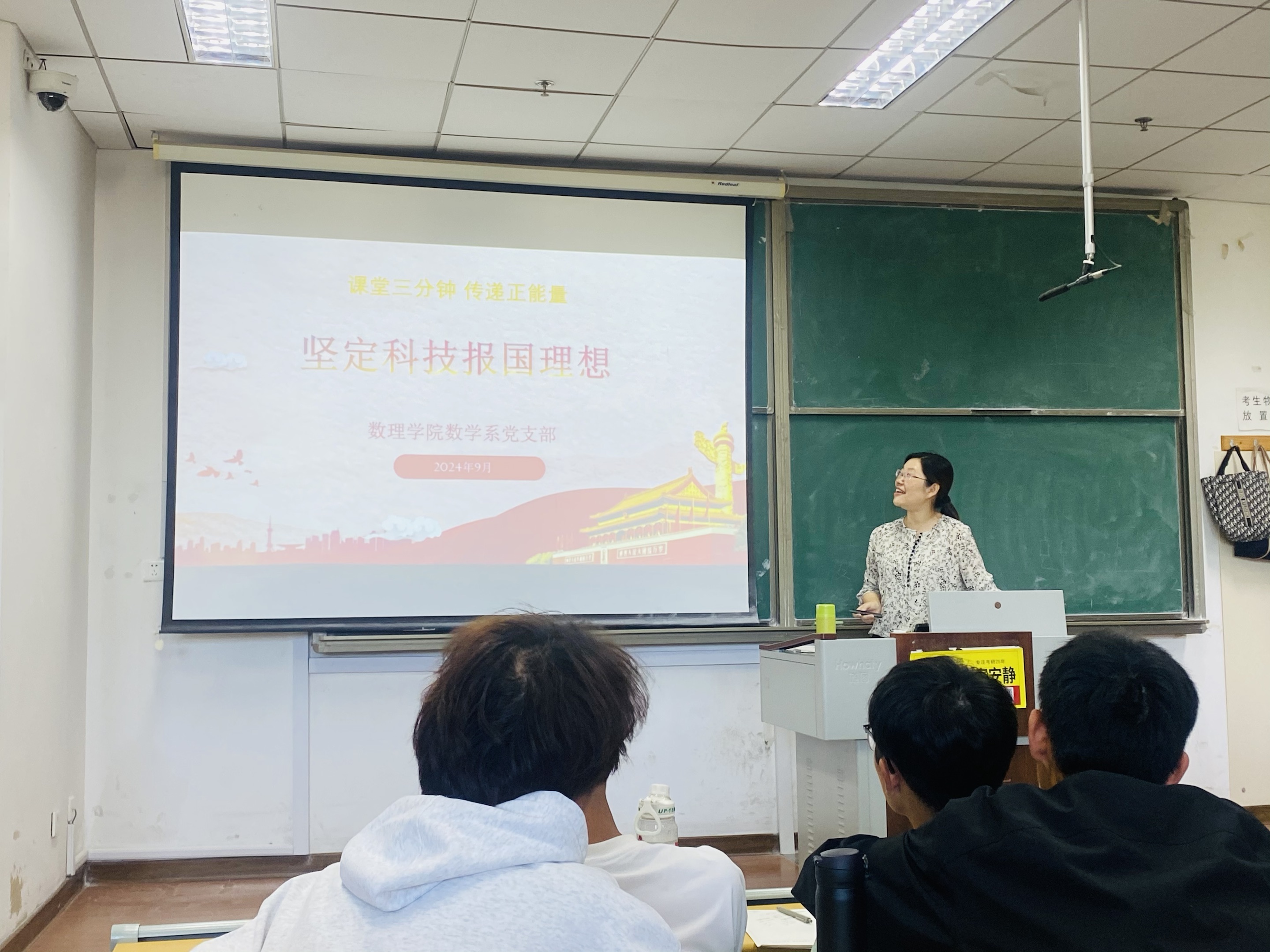 结合全校高等数学等公共课的学习,积极为学生开展 “课堂三分钟,传递正能量”活动。为学生树立正确的世界观、人生观和价值观,教育学生们要争做有理想、敢担当、能吃苦、肯奋斗的新时代好青年。本学期课堂三分钟的主题为“坚定科技报国理想”。