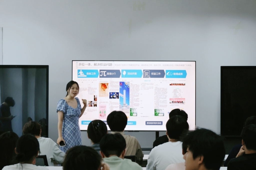 会上,学生会负责人葛小乐用“三个关键词”概括本学期工作:思想铸魂、品牌升级、服务增效。思想铸魂方面,以“活力讲堂”“星空讲堂”为载体,累计开展主题宣讲12场、学业专题讲座28场,覆盖科研竞赛、保研考研等热点需求,服务同学超300人次;品牌活动升级中,“数理文化节”π系品牌矩阵扩容,数学建模竞赛参与人数同比增长20%,趣味运动会、“数风杯”篮球赛、“理润杯”辩论赛等文体活动反响热烈;服务效能提升方面,“有事找小π”反馈机制闭环解决同学诉求83项,满意度达95%,内部考核制度优化推动部门协作效率提升30%。