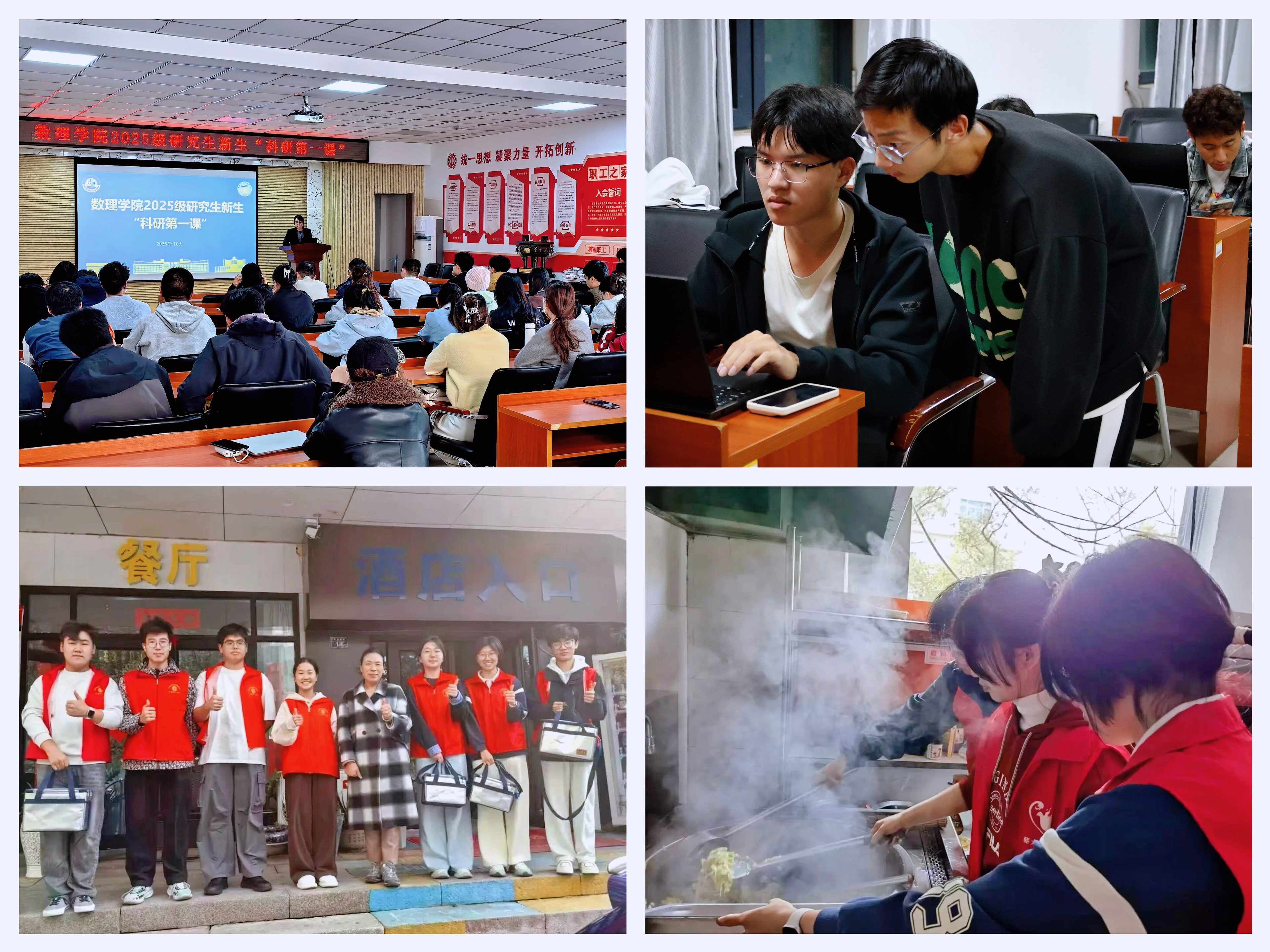 学院团委坚持知行合一,着力将学习成效转化为实际行动。融入学风建设,将学习活动与加强学风建设相结合,依托学生会、研究生会“我为同学做实事”项目“朋π学社”“数理夜校”开展“初心课堂”“科研分享”等活动,引导学生夯实专业基础,勇攀科学高峰。促进创新实践,强化科研诚信教育,组织“科研诚信讲座”,营造潜心向学的良好氛围,积极组织学生参与各类学科竞赛,将学习热情转化为创新动力。引导服务奉献,鼓励学生在实践中锤炼能力,培养攻坚克难的意志品质。“科普团支部”“书香团支部”“雷锋团支部”等特色团支部组织开展科普宣传、悦读青春、爱幼助老等志愿服务活动,让学生在服务社会中践行初心使命。