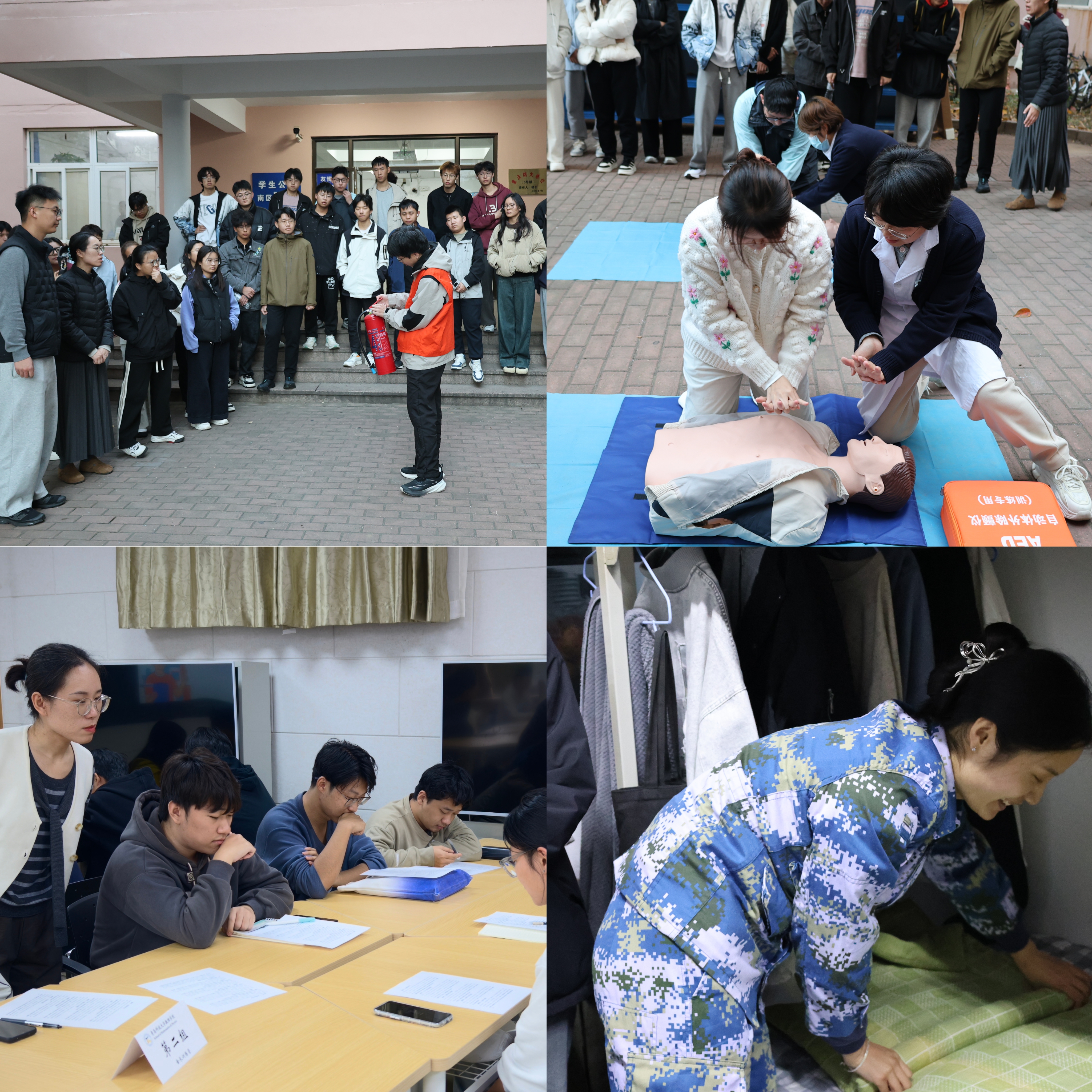 细化实务指导,提升履职效能。训练营突出实战导向,通过“五大典型案例”沉浸式推演,深度剖析违章电器处置、危机识别等典型场景;引入消防志愿协会、校医院专业力量,开展急救技能实训与实景演示,并聘任退役士兵担任安全卫生指导员,持续增强舍长的风险应对与实操能力。