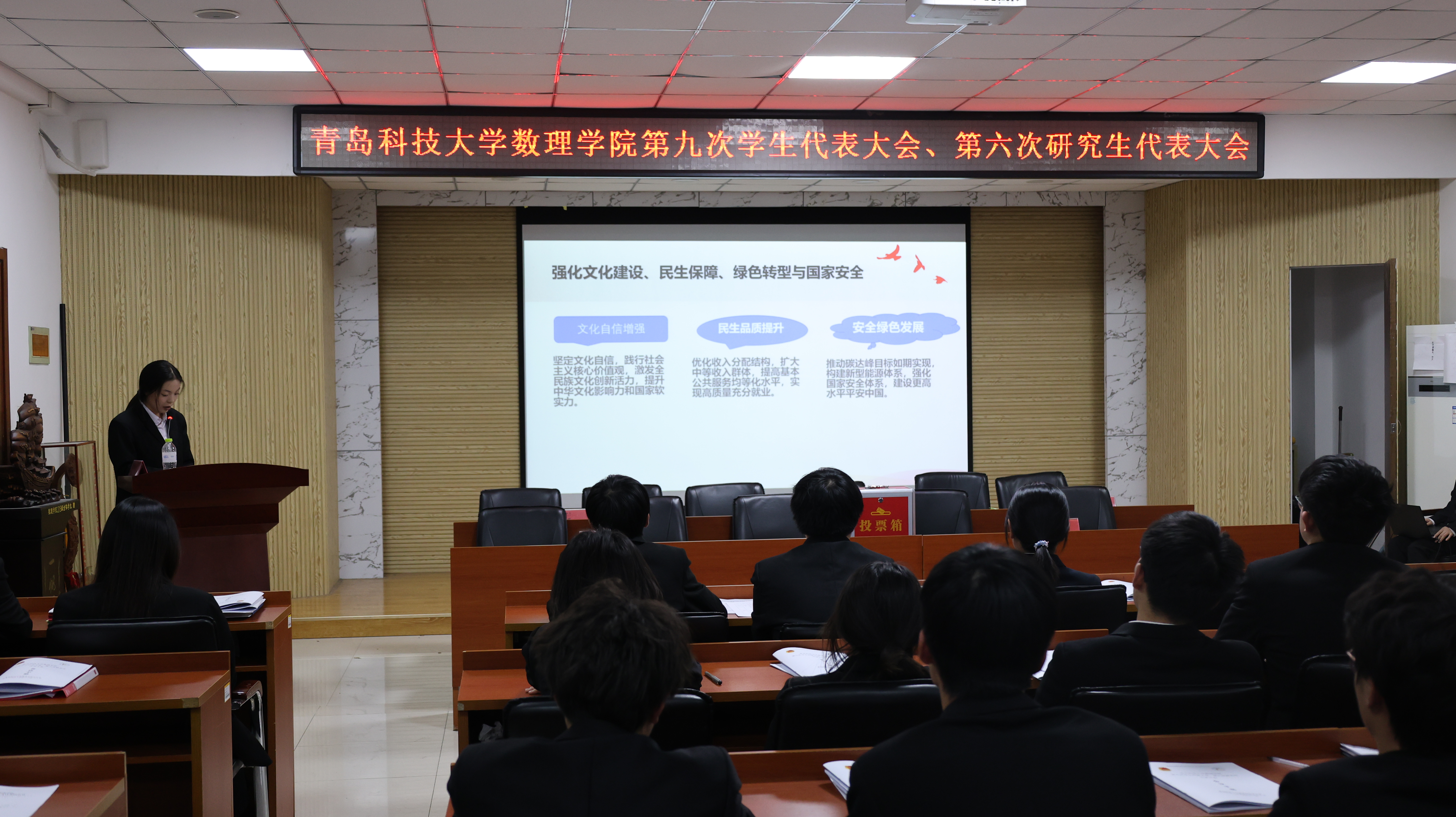 团委于D2-220会议室召开第九次学生代表大会、第六次研究生代表大会。学院党委副书记李雯雯、全体团委老师、校学生会负责人刘姿影、数据科学学院学生会代表庞宇轩以及全院学生代表共同参与本次会议。