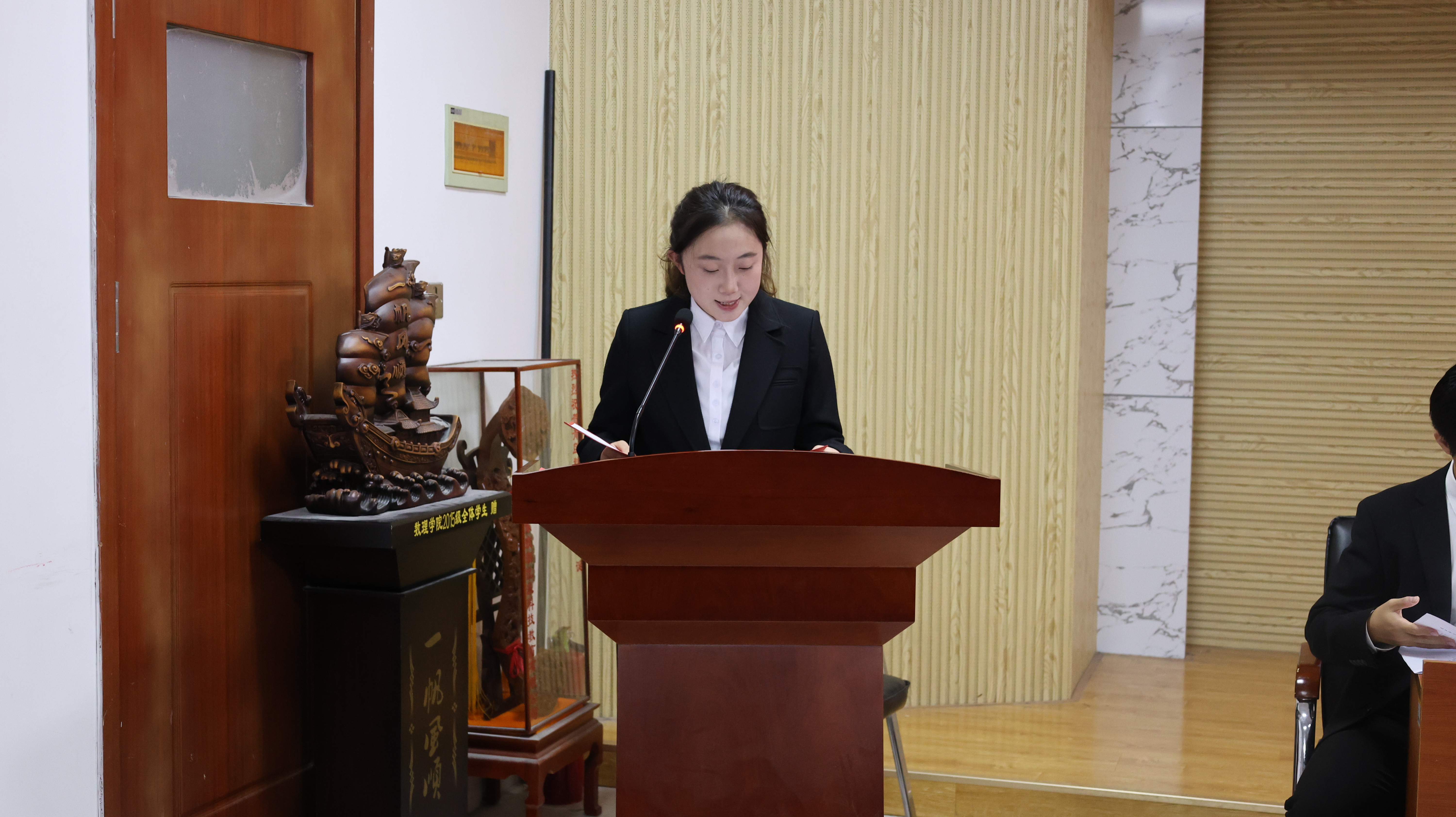 李雯雯为大会致开幕词。她充分肯定了学院学生会和研究生会在服务同学、学风建设、科创实践等方面所做出的积极贡献,并向全院青年学生提出三点希望:一要夯实专业根基,在求知问道中“钻得深、扎得稳”,培养严谨求实的科学精神与创新思维;二要拓展综合素质,在能力提升中“走得远、立得高”,积极参与实践锻炼,增强团队协作能力与社会责任感;三要勇担时代使命,在人生追求中“望得广、行得正”,将个人理想主动融入国家发展大局。她强调,新一届学生会、研究生会要继承学院优良传统,勇于开拓创新,团结带领全院同学以更加饱满的热情和昂扬的斗志投身学习与实践,在实现个人价值的同时,为学校和学院发展贡献青春力量。
