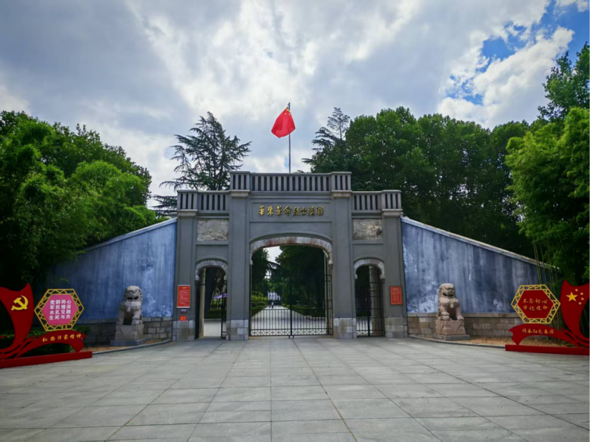 次日清晨,实践队怀着肃穆的心情前往华东革命烈士陵园。在苍松翠柏环绕中,队员们手捧白菊,列队缓步走向巍峨矗立的革命烈士纪念碑,仔细整理缎带、敬献鲜花,并集体肃立默哀。默哀仪式后,一名学生代表在纪念碑前讲述了革命先烈为民族解放事业浴血奋战的英勇事迹。随后,队员们沿墓碑缓步前行,逐一擦拭碑上尘土,仔细瞻仰烈士英名与生平介绍。了解到许多烈士牺牲时年仅二十余岁,与队员们年龄相仿,大家无不肃然起敬,满怀对先烈的深切缅怀与崇高敬意。