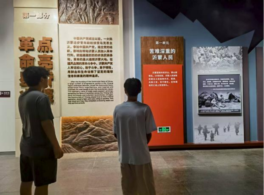实践队分为线下走访与线上协两个工作组。活动首日,队员们来到沂蒙革命纪念馆。馆内丰富的历史文物、影像资料及场景复原,生动再现了沂蒙人民在革命战争年代的英勇事迹。在“沂蒙红嫂”展区,沂蒙妇女以乳汁救伤员、用小推车支援前线的感人故事深深触动了队员们,“最后一粒米做军粮,最后一块布做军装”的记载,深刻诠释了军民水乳交融、生死与共的无私奉献精神。参观过程中,队员们认真记录细节,驻足沉思,并通过线上平台实时分享见闻与感悟,实现线上线下联动,沉浸式感悟沂蒙精神的深刻内涵。