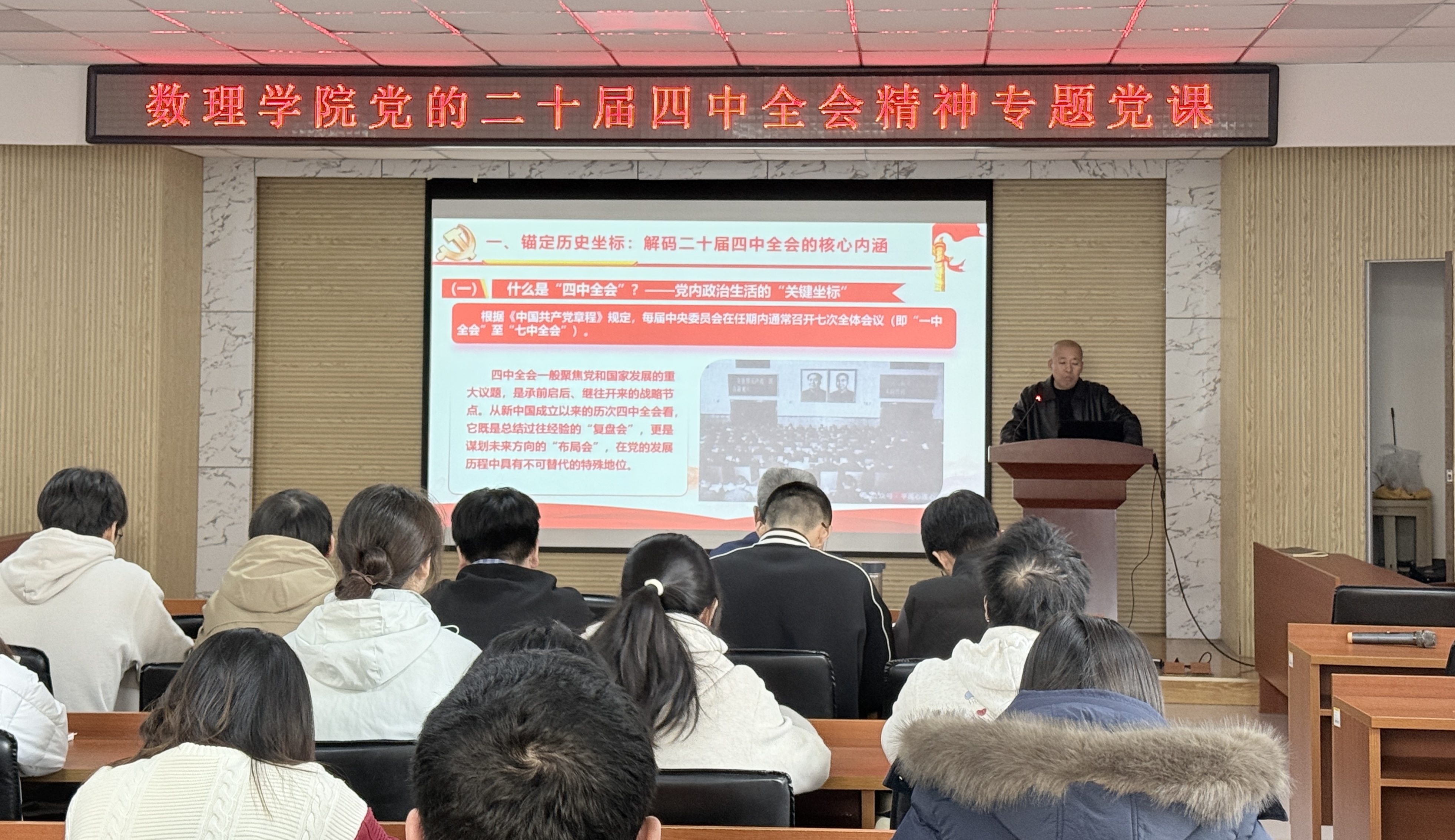 党委“先锋大讲堂”在D2-220会议室举行党的二十届四中全会精神专题宣讲会。学院党委书记刘保成、院长杨树国为全体师生党员作专题宣讲。学院党政领导班子成员、全体教职工党员、学生党员代表参宣讲。