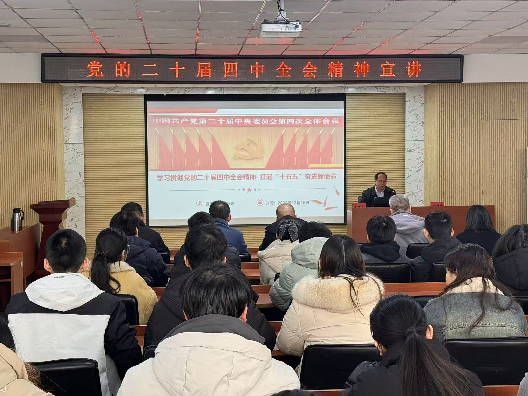 12月16日下午,校党委常委、副校长罗细亮以《学习贯彻党的二十届四中全会精神,扛起“十五五”奋进新使命》为题,到自拍流出