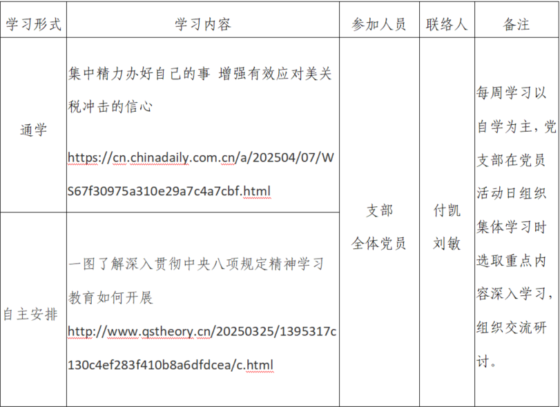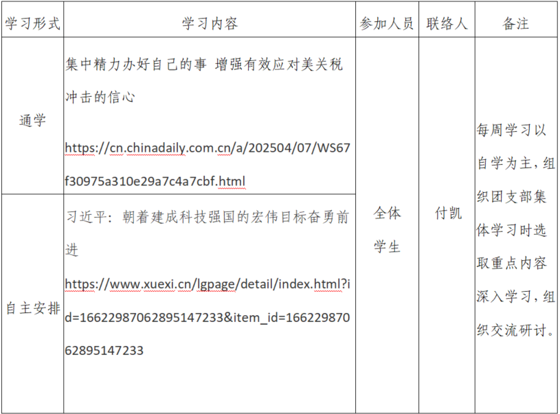 2025年春季学期第6周数理学院本科生党支部、研究生党支部学习安排
