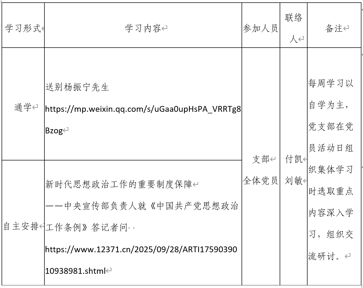 2025年秋季学期第9周自拍流出 本科生党支部、研究生党支部学习安排