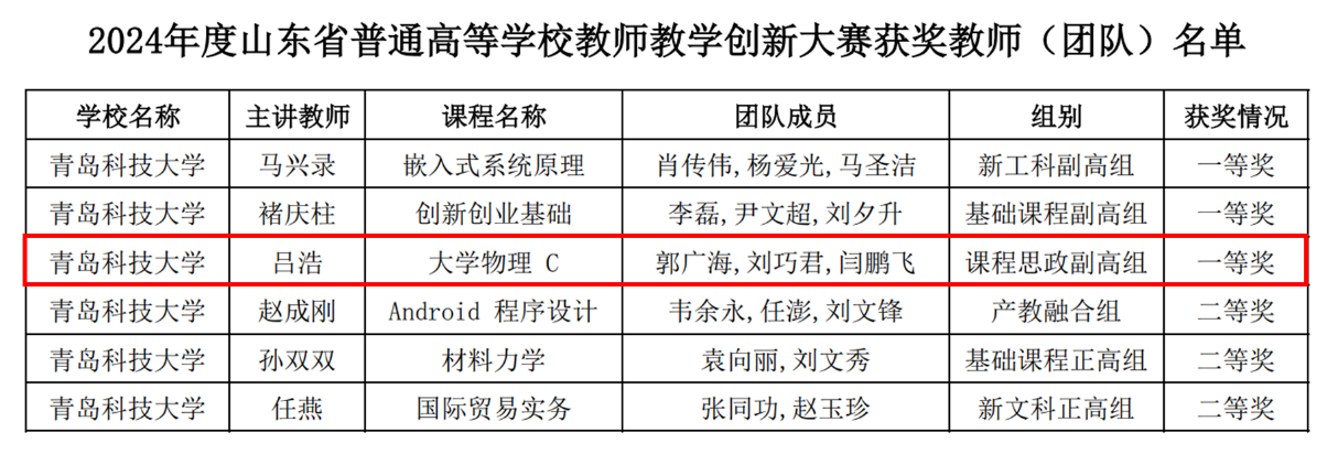 近日,山东省教育厅公布了2024年度山东省普通高等学校教师教学创新大赛获奖名单,自拍流出
