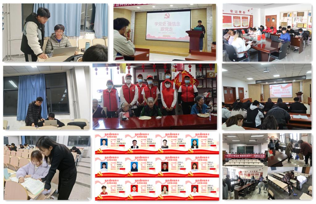 把学习贯彻党的十九届六中全会精神与党史学习教育结合,进一步巩固拓展“我为群众办实事”实践成果,引领全体师生更好地从党的百年奋斗重大成就和历史经验中汲取智慧力量,真正把全会精神体现到行动上、落实到工作中。学生党支部通过党员结对子,亮出党员身份,发挥先锋作用,形成“个十百千”的传递效应和“比学赶帮”的良好态势;深化志愿服务,组织党员、青年学生开展爱心助老、助教、助贫等活动;举办“学党史,跟党走”党史知识竞赛,紧跟党的十九届六中全会精神学习热潮,检验学习效果,夯实理论根基,坚持不懈用党的创新理论和最新成果武装头脑、指导实践;组织青年学生开展“不负百年荣光,贡献青春力量”学习心得分享会,择优推选展示学习心得,营造浓厚学习氛围。