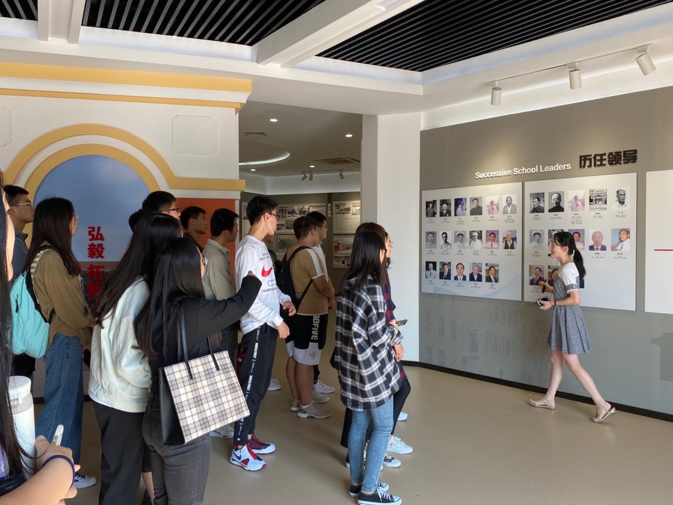 同学们在校史馆工作人员的引导下,参观了校史馆各部分展览,工作人员讲解了学校的历史沿革、科大精神、橡胶品格,学校各个发展阶段的特点及优秀教师、优秀学生、教学科研成果等。