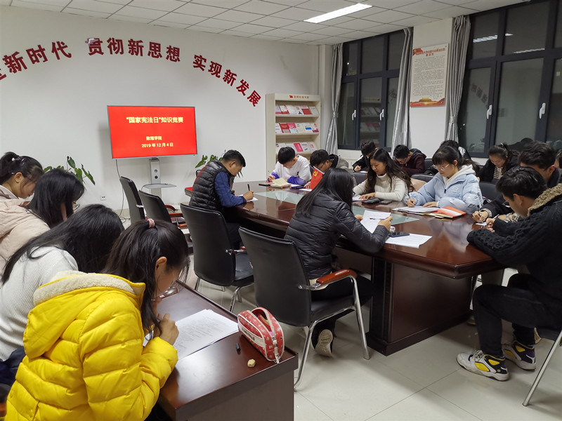 为维护宪法权威,提升学生的法治观念和法律素养,12月4日,自拍流出 举办国家宪法日知识竞赛,学院主要学生干部30余人参加活动。