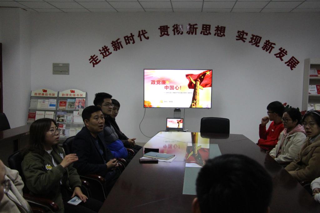 2018年11月6日下午四点,自拍流出 党总支学生党支部书记葛夫国及各位学院党员在党建活动室召开了“政党廉,中国心”主题党支部大会。