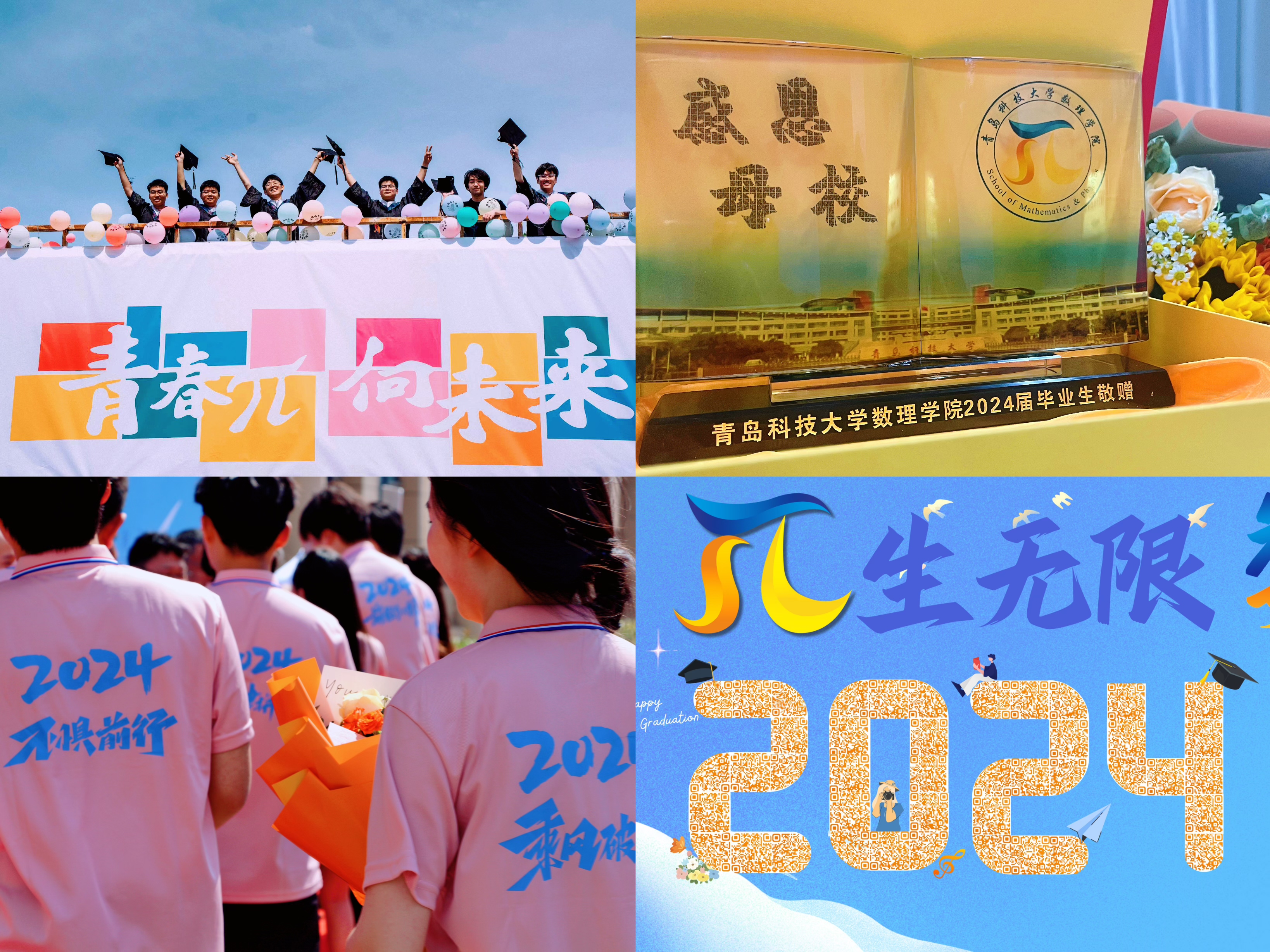 数说相遇,礼赞未来。临别之际,学院为每一位毕业生定制π系文化衫,八个主题蓄满青春能量;打造打卡景点“青春π向未来”网红墙,用创意为青春送行;定制水杯、崭新党徽,给毕业生党员送上“信仰大礼包”;举办专题交流会、开设朋π小讲堂,毕业生为学弟学妹送经验、送心得;毕业生录制对母校的深情告白与温暖祝福,生成二维码制作彩色喷绘、水晶座台,让“感恩母校”变得有声有色。
