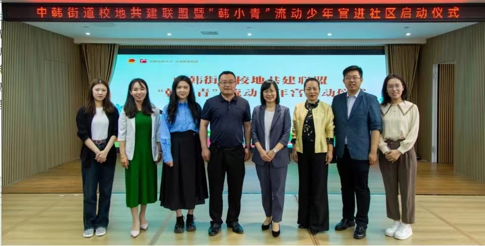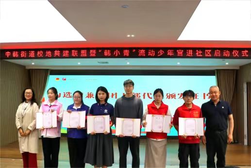 在中韩街道共建联盟暨“韩小青”流动少年宫启动仪式上,共青团崂山区委书记付苗苗对校地共建联盟的成立、“韩小青”流动少年宫项目的启动表示祝贺,并指出要以本次校地共建为契机,持续壮大合作“朋友圈”,延伸合作链。会上,“雷锋式”团支部主理人都雪受聘为社区兼职团干部,“雷锋式团支部 社区中青春行”项目作为优秀志愿服务项目代表参与室外现场路演。