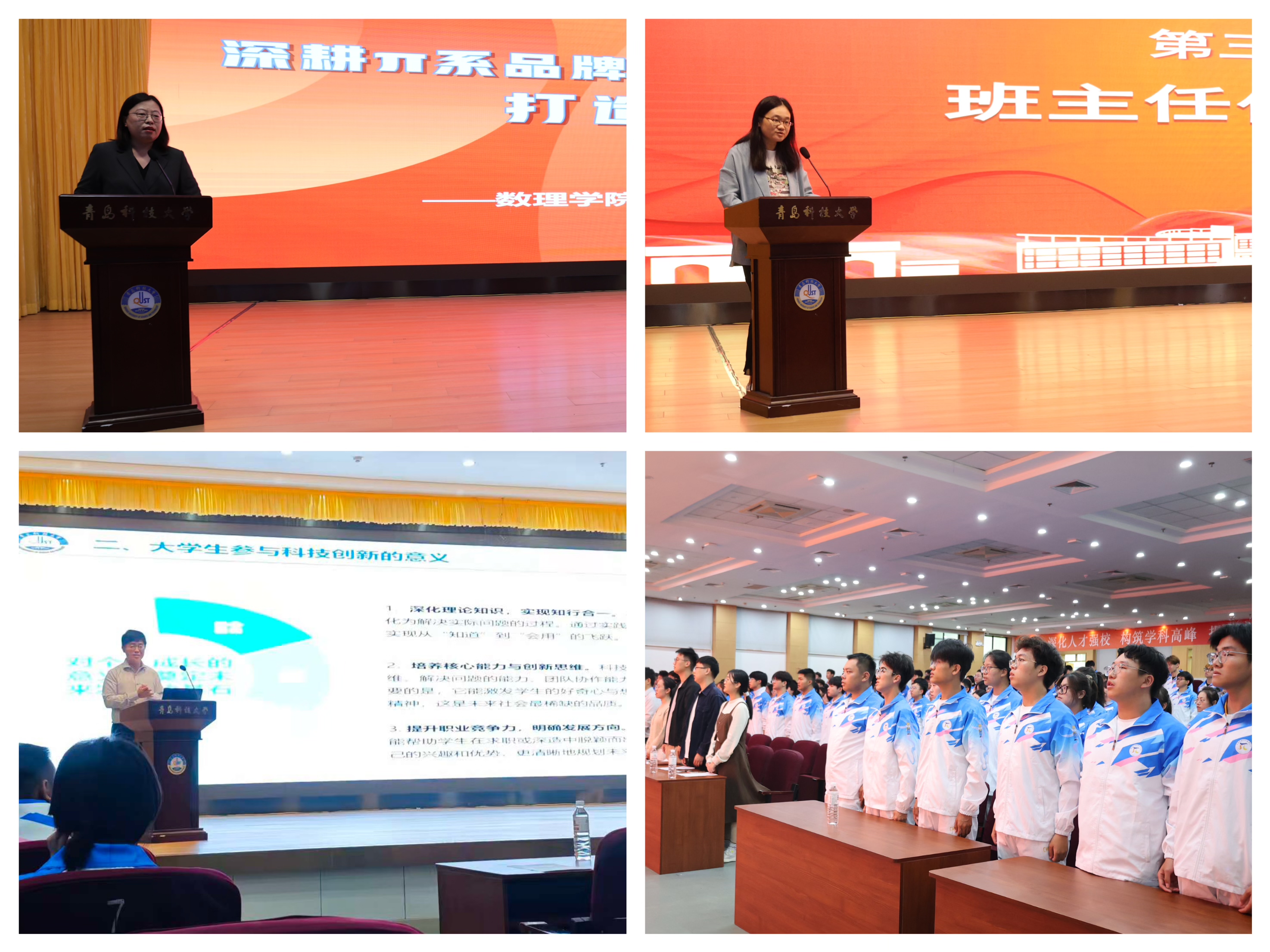 李雯雯系统回顾了过去一年π型班级在思想引领、科研学习、社会实践等方面取得的丰硕成果,彰显了学院特色育人模式的显著成效。数学系主任张瑞坤、物理系主任高鹏分别为格物致知班、思享悦读班、雷锋团支部、科研先锋班“π型班级”授旗,进一步打造学院特色育人品牌。